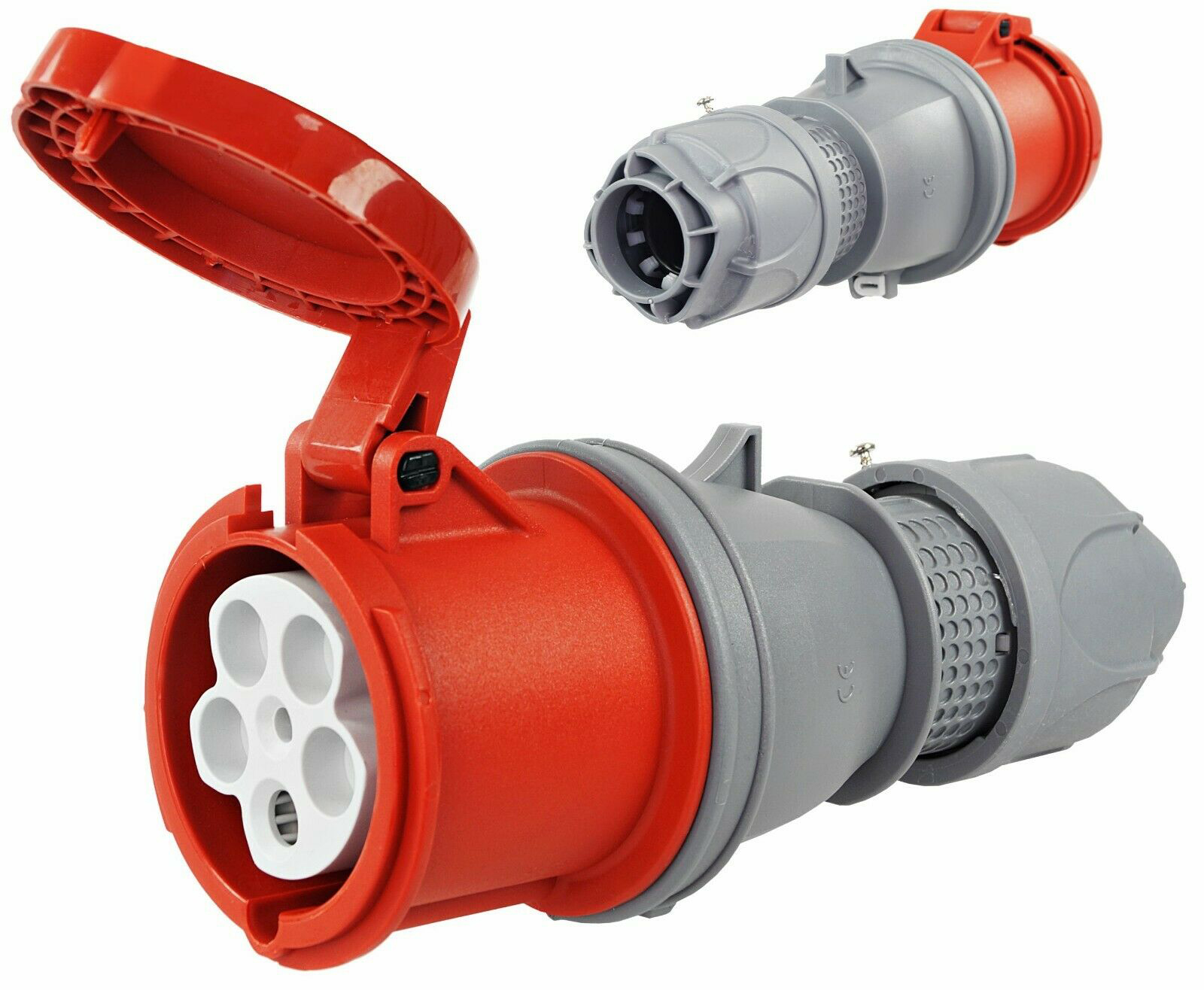 Weiterführende Links zu "CEE-Kupplung mit Schutzkappe Außenbereich 63A 5-polig 3P+N+E+P 415V IP44 Rot"