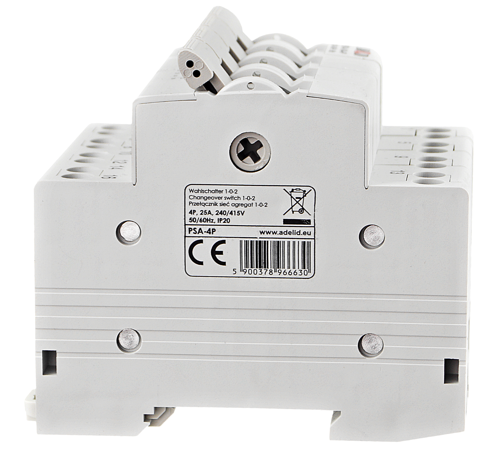 Produktinformationen "Wahlschalter-Umschalter 1-0-2 25A Reiheneinbau 4-polig"