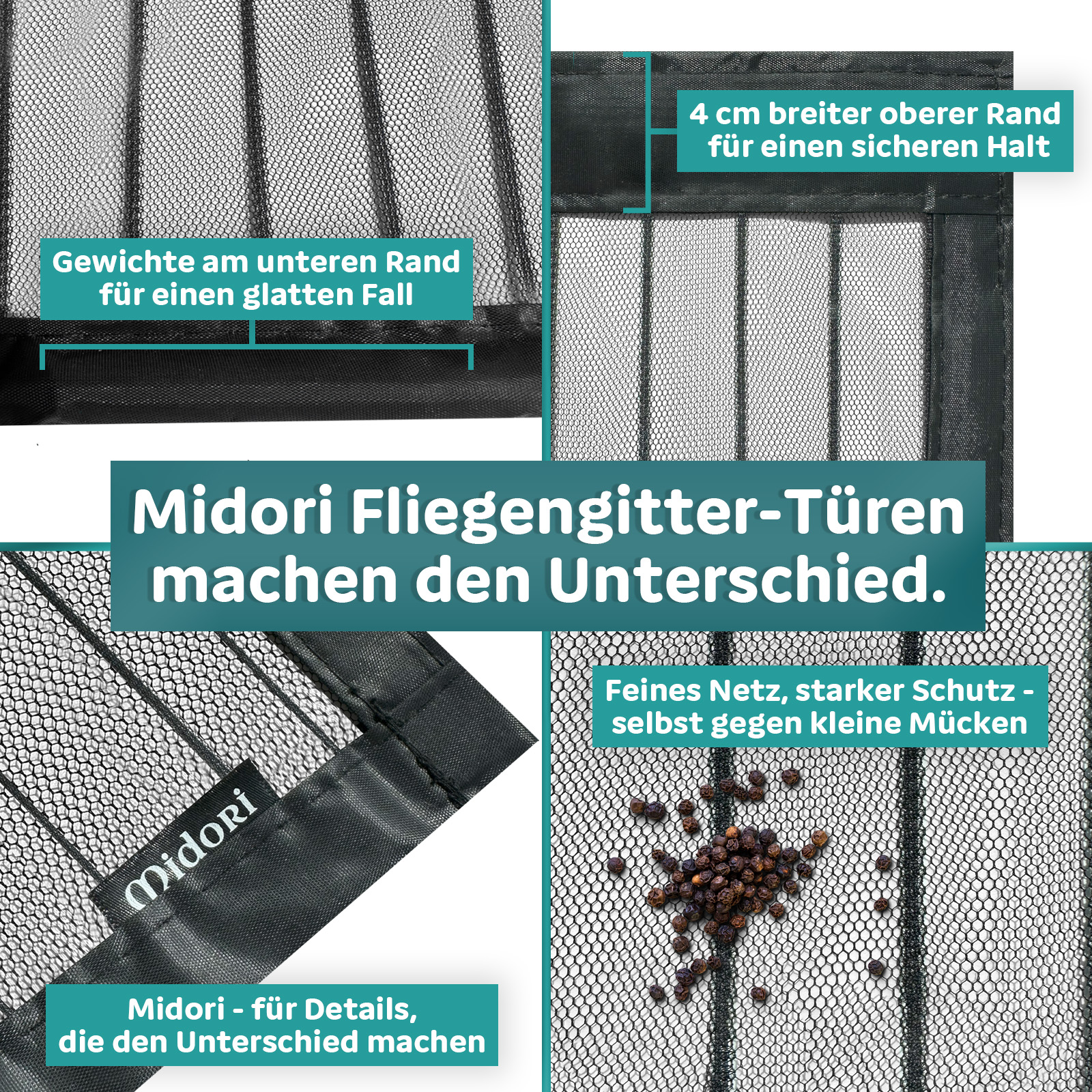 Mit der Midori Fliegengitter Tür treffen Sie die beste Wahl für einen effektiven und ästhetischen Insektenschutz. Die Kombination aus starken, unsichtbaren Magneten, einfacher Montage, perfekter Passform und hochwertigem Netzgewebe macht sie zur idealen Lösung für Balkontüren. Genießen Sie den Sommer in vollen Zügen und lassen Sie Frischluft in Ihr Zuhause, während Sie gleichzeitig Insekten fernhalten. Vertrauen Sie auf die Qualität und die durchdachte Konstruktion der Midori Fliegengitter Tür – für ein insektenfreies und angenehmes Wohnerlebnis.