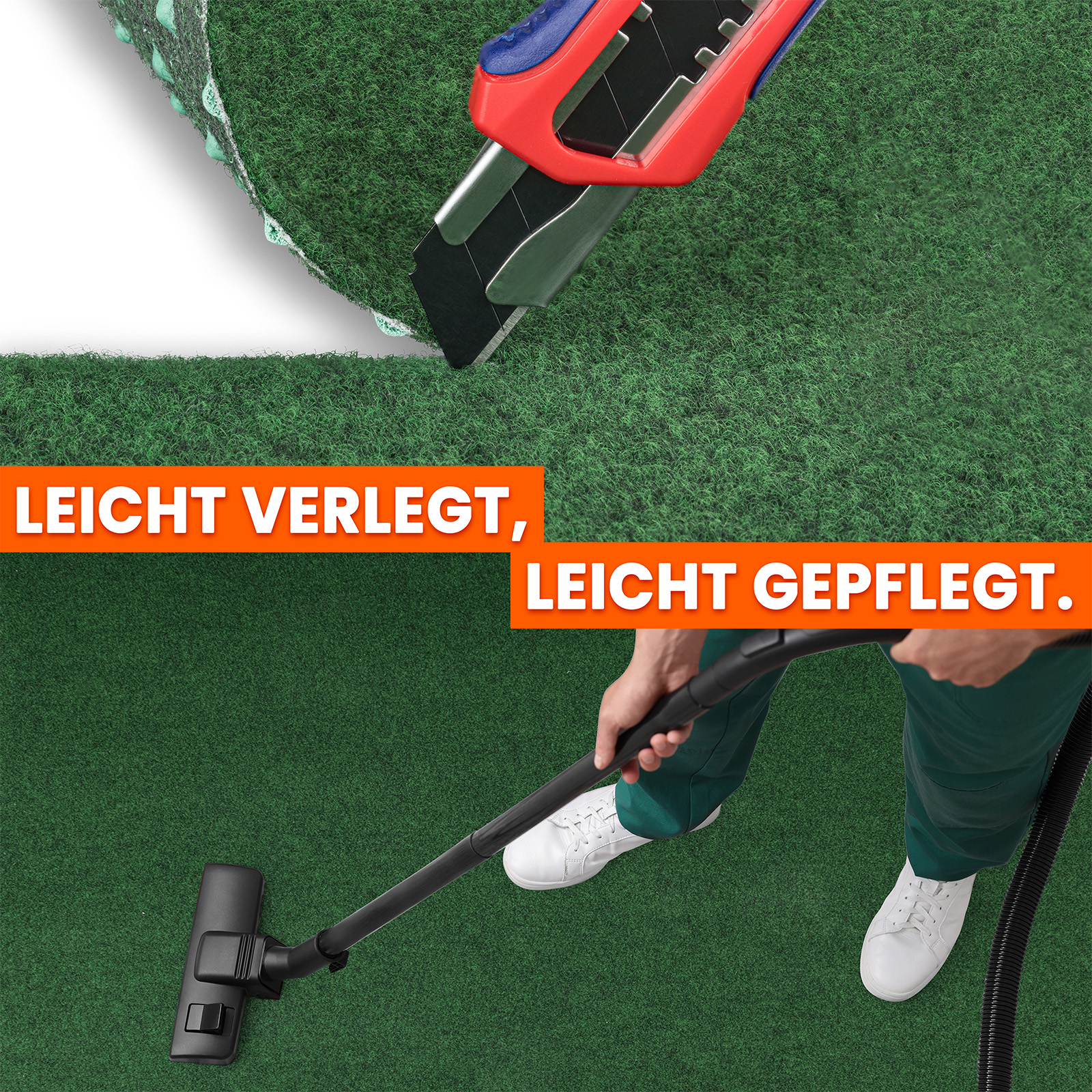 Die Verlegung des Rasenteppichs ist unkompliziert und erfordert kein spezielles Werkzeug. Er lässt sich leicht ausrollen, zuschneiden und anpassen. Auch die Pflege ist denkbar einfach: Staubsaugen oder gelegentliches Abspülen mit Wasser reicht vollkommen aus, um den Teppich sauber zu halten. Als Balkonteppich oder Gartenbodenbelag überzeugt er durch dauerhafte Sauberkeit und geringen Pflegeaufwand.