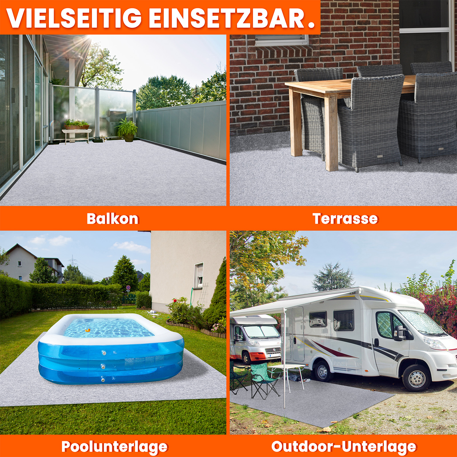 Der Rasenteppich von Midori besteht aus besonders strapazierfähigem Polyester, das speziell für den Einsatz unter freiem Himmel konzipiert wurde. Sonne, Regen, Schnee oder Frost – das Material bleibt formstabil und farbecht. Die graue Oberfläche verliert auch bei intensiver Beanspruchung nicht an Leuchtkraft. Damit eignet sich der Balkonteppich hervorragend für alle Jahreszeiten und bleibt selbst bei Dauerbewitterung optisch ansprechend.