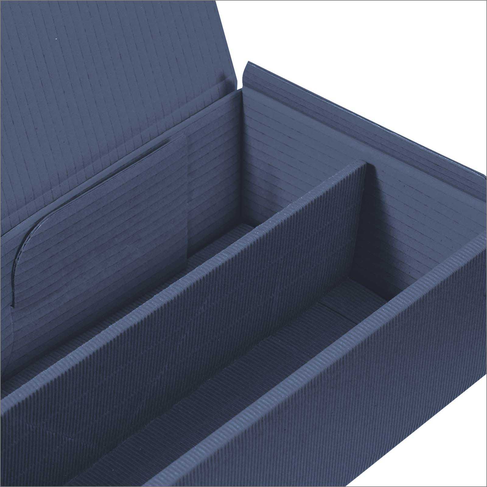 Die Geschenkboxen haben einen separaten Flascheneinsatz, der die Flaschen voneinander trennt. Der Innenraum kann durch die vorgeschnittenen, verstellbaren Ecken an unterschiedliche Flaschenlängen angepasst werden. Wenn Sie eine Unterteilung in der Verpackung nicht benötigen, um andere Produkte zu verpacken, können Sie diesen Einsatz gerne entfernen.