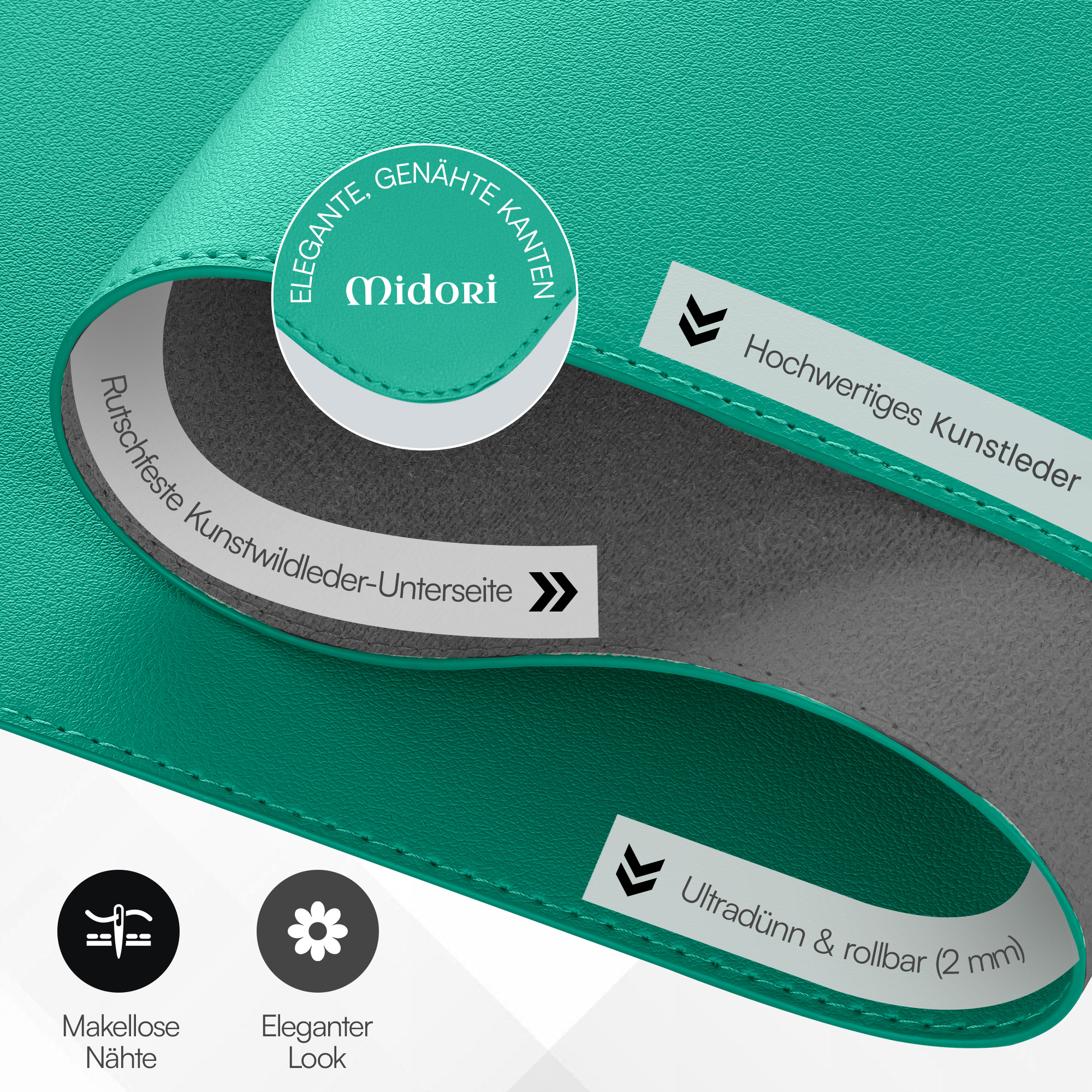 Midori Schreibtischunterlage aus Kunstleder 80 x 40 cm Randnähte rutschfest Grün