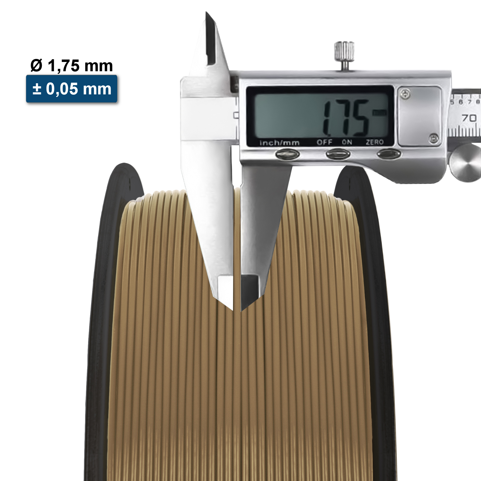 Mit unseren 1,75 mm PLA 3D-Filamenten setzen wir auf höchste Präzision im gesamten Produktionsprozess. Die Herstellung der Filamente erfolgt unter strengsten Prüfungsmechanismen, sodass der Durchmesser der hochwertigen Filamente in jedem Zentimeter eine Toleranz von nur +/- 0,05 mm aufweist. Der daraus entstehende nahezu konstante Filament-Durchmesser verhindert Verstauungen und sorgt für ein reibungsloses Drucken ohne Unterbrechungen, woraus beim Drucken eine minimale Schrumpfung, stärkere Schichthaftung, sowie eine glattere Oberfläche resultieren.