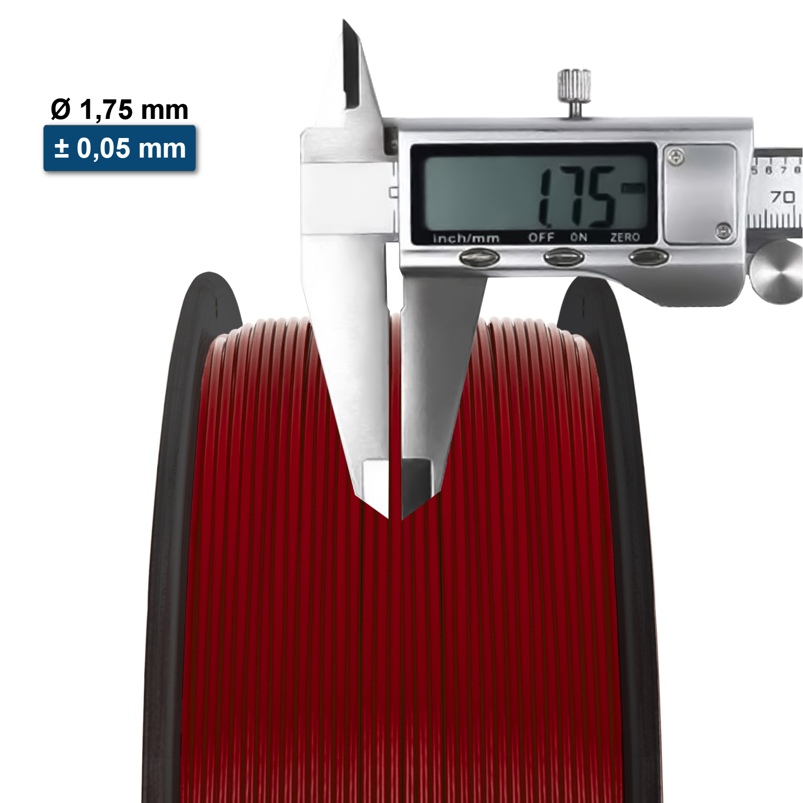 Mit unseren 1,75 mm PLA 3D-Filamenten setzen wir auf höchste Präzision im gesamten Produktionsprozess. Die Herstellung der Filamente erfolgt unter strengsten Prüfungsmechanismen, sodass der Durchmesser der hochwertigen Filamente in jedem Zentimeter eine Toleranz von nur +/- 0,05 mm aufweist. Der daraus entstehende nahezu konstante Filament-Durchmesser verhindert Verstauungen und sorgt für ein reibungsloses Drucken ohne Unterbrechungen, woraus beim Drucken eine minimale Schrumpfung, stärkere Schichthaftung, sowie eine glattere Oberfläche resultieren.