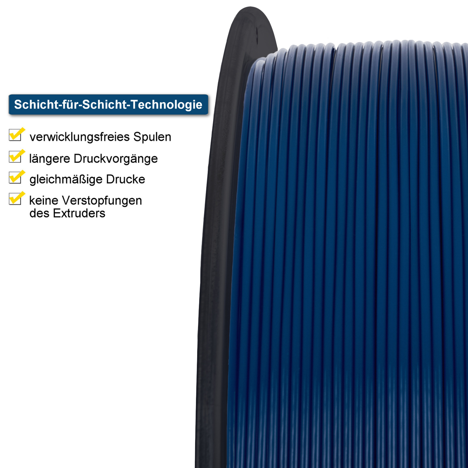 Mit unseren 1,75 mm PLA 3D-Filamenten setzen wir auf höchste Präzision im gesamten Produktionsprozess. Die Herstellung der Filamente erfolgt unter strengsten Prüfungsmechanismen, sodass der Durchmesser der hochwertigen Filamente in jedem Zentimeter eine Toleranz von nur +/- 0,05 mm aufweist. Der daraus entstehende nahezu konstante Filament-Durchmesser verhindert Verstauungen und sorgt für ein reibungsloses Drucken ohne Unterbrechungen, woraus beim Drucken eine minimale Schrumpfung, stärkere Schichthaftung, sowie eine glattere Oberfläche resultieren.