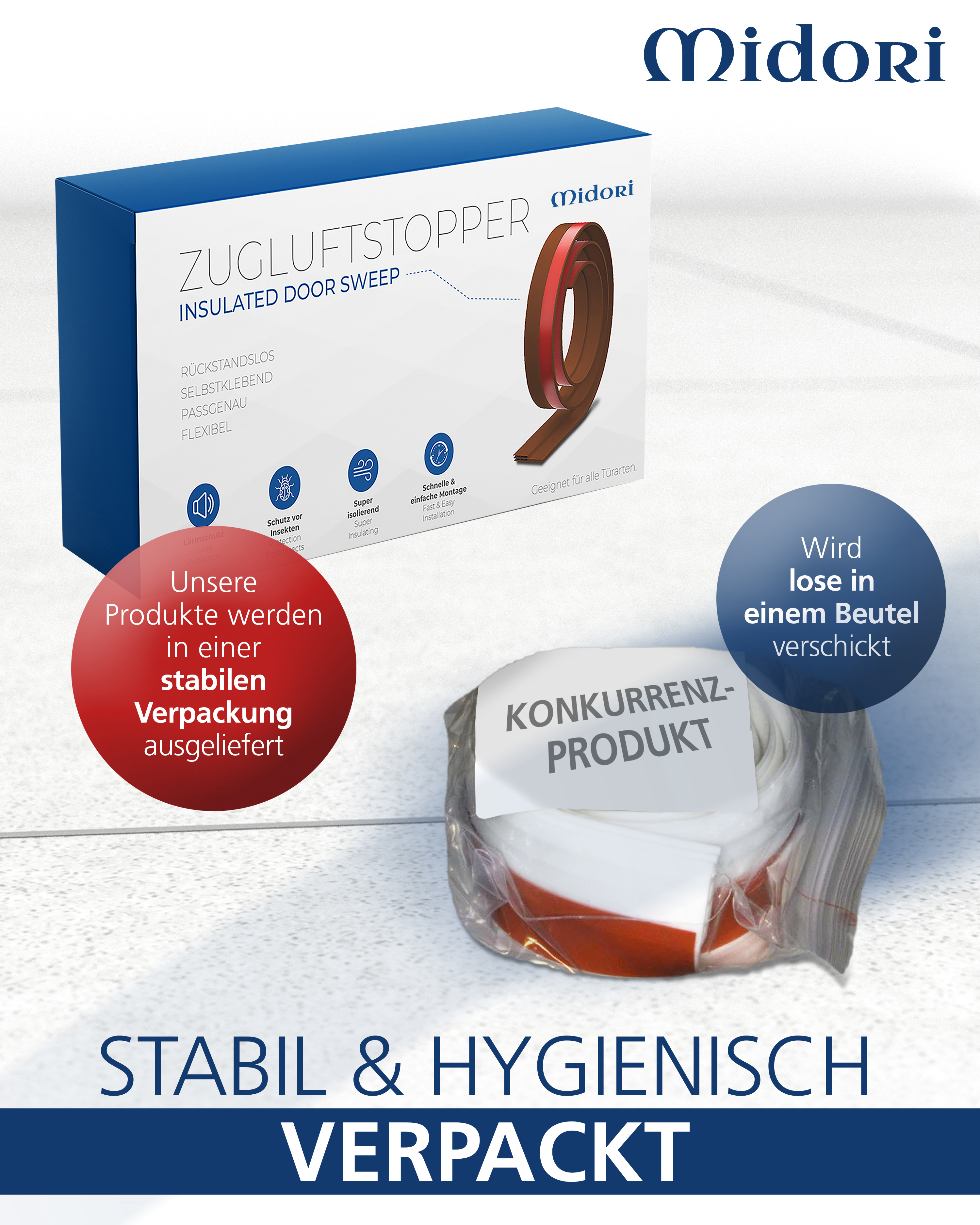 Unsere Türdichtungen von Midori bieten nicht nur Schutz vor Zugluft und verbessern die Energieeffizienz, sondern sind auch vielseitig einsetzbar. Sie eignen sich für alle glatten Oberflächen und können einfach auf die Breite jeder Tür zugeschnitten werden. Diese Flexibilität gewährleistet eine perfekte Passform und macht sie zur idealen Lösung für jedes Zuhause. Ob für Haustüren, Innentüren oder Schiebetüren – mit unseren Türdichtungen erhalten Sie zuverlässigen Schutz und eine einfache Anpassung für maximale Effektivität.