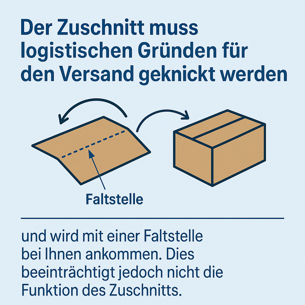Wichtiger Hinweis zum Produkt: Aus logistischen Gründen werden die Zuschnitte für den Versand an einer Stelle gefaltet. Dies beeinträchtigt weder die Stabilität noch die Funktionalität des Produkts in irgendeiner Weise.