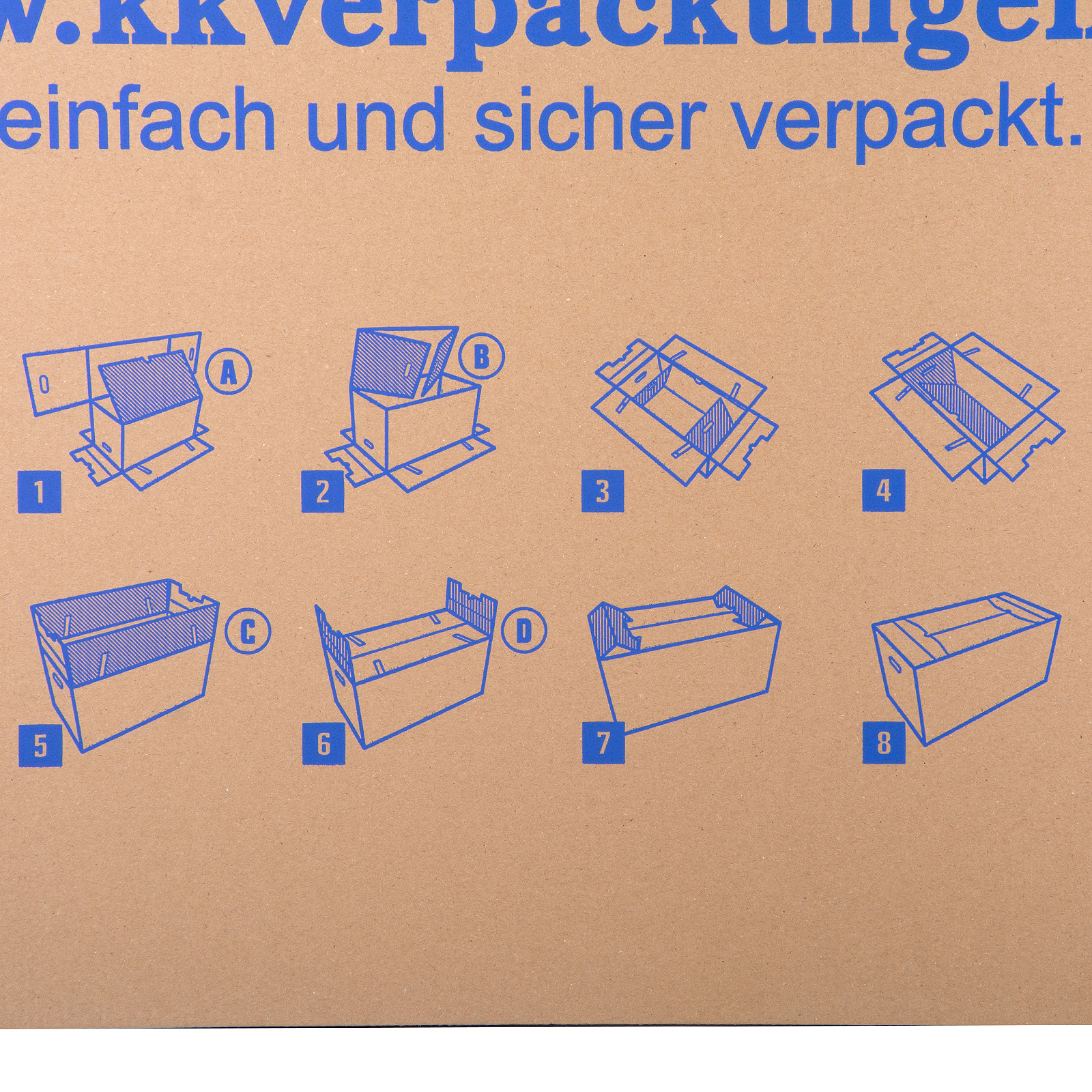 Sie haben es sicher schon bei anderen Kartons gesehen: Der Boden ist mit einer speziellen Technik versehen, um den Boden der Kartons stabiler zu machen. Unsere Umzugskartons haben einen doppelten Boden, um Ihnen absolute Sicherheit zu bieten. Befolgen Sie unbedingt Schritt für Schritt die Aufbauanleitung. Falten Sie zuerst die Seite mit der halbrunden Öffnung ganz nach innen, dann die Seite mit dem Griffloch. Dazu falten Sie zunächst die Seitenteile zur Mitte und klappen sie um. Nun können Sie die Seitenteile wieder aufklappen und den Boden mit der halbrunden Öffnung nach unten falten. Überprüfen Sie den sicheren Halt des Bodens und Sie können alle Ihre Gegenstände sicher in der Umzugskiste verstauen.