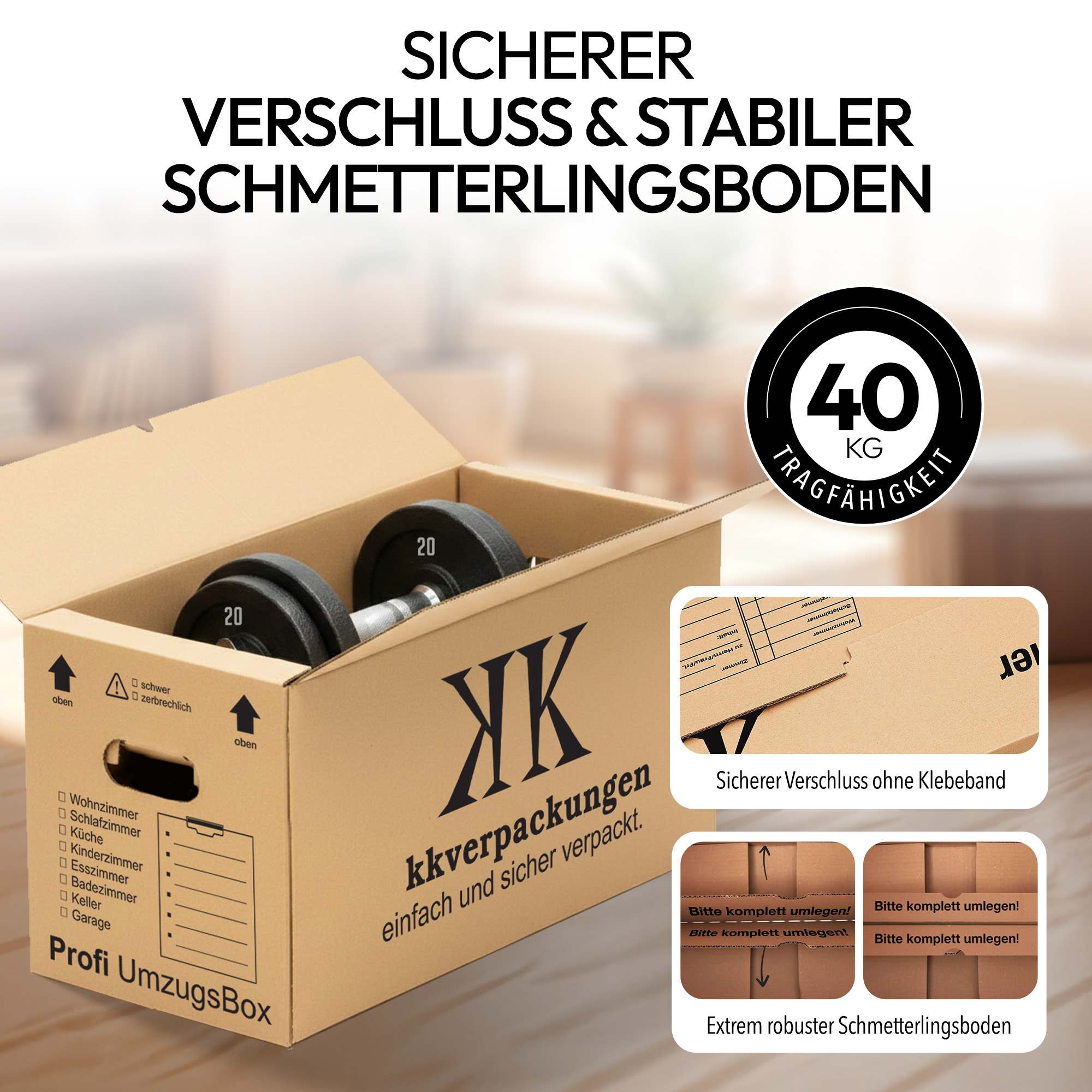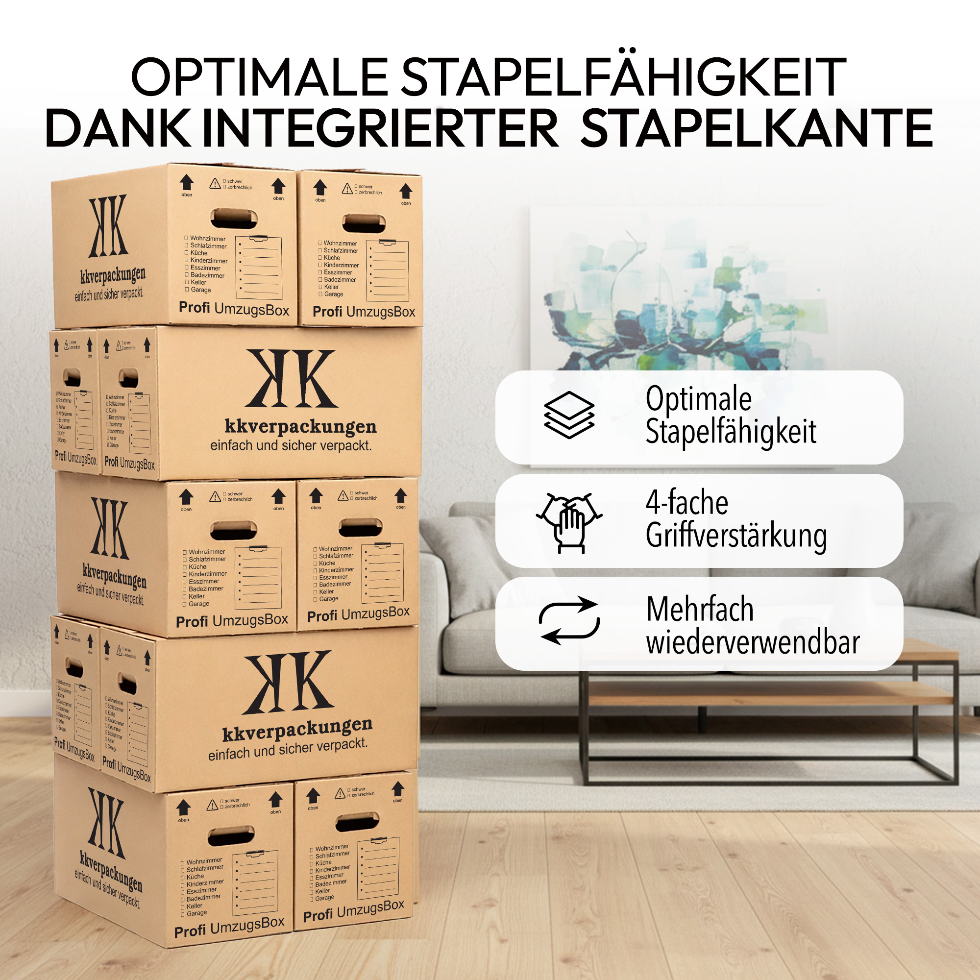 Unser Kommentar zu "20 neue UMZUGSKARTONS UMZUGKARTONS 2 Wellig 45kg LAST KK2W"