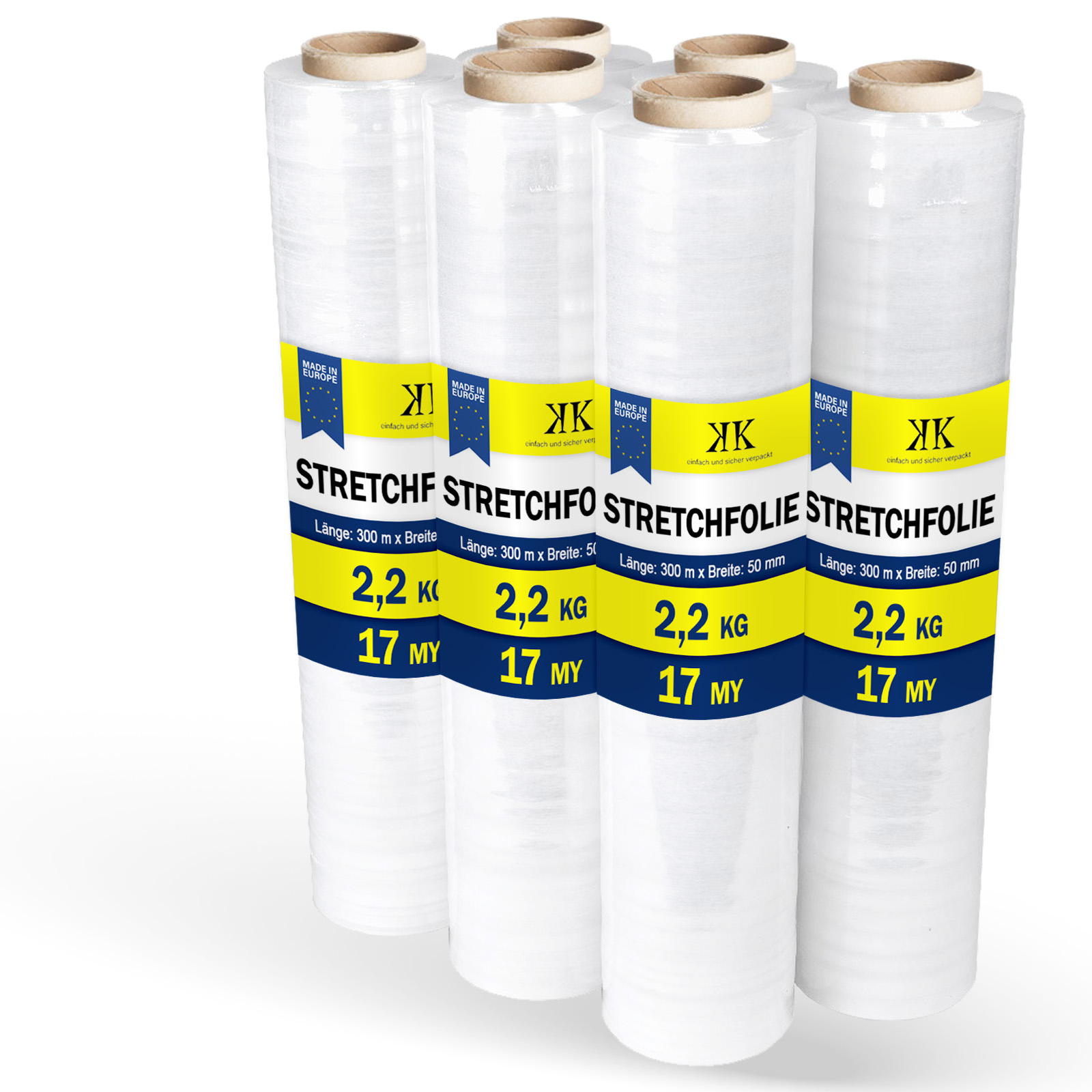 Weiterführende Links zu "2 Rollen Stretchfolie Palettenfolie Wickelfolie 17 my 500mm x 300m transparent"