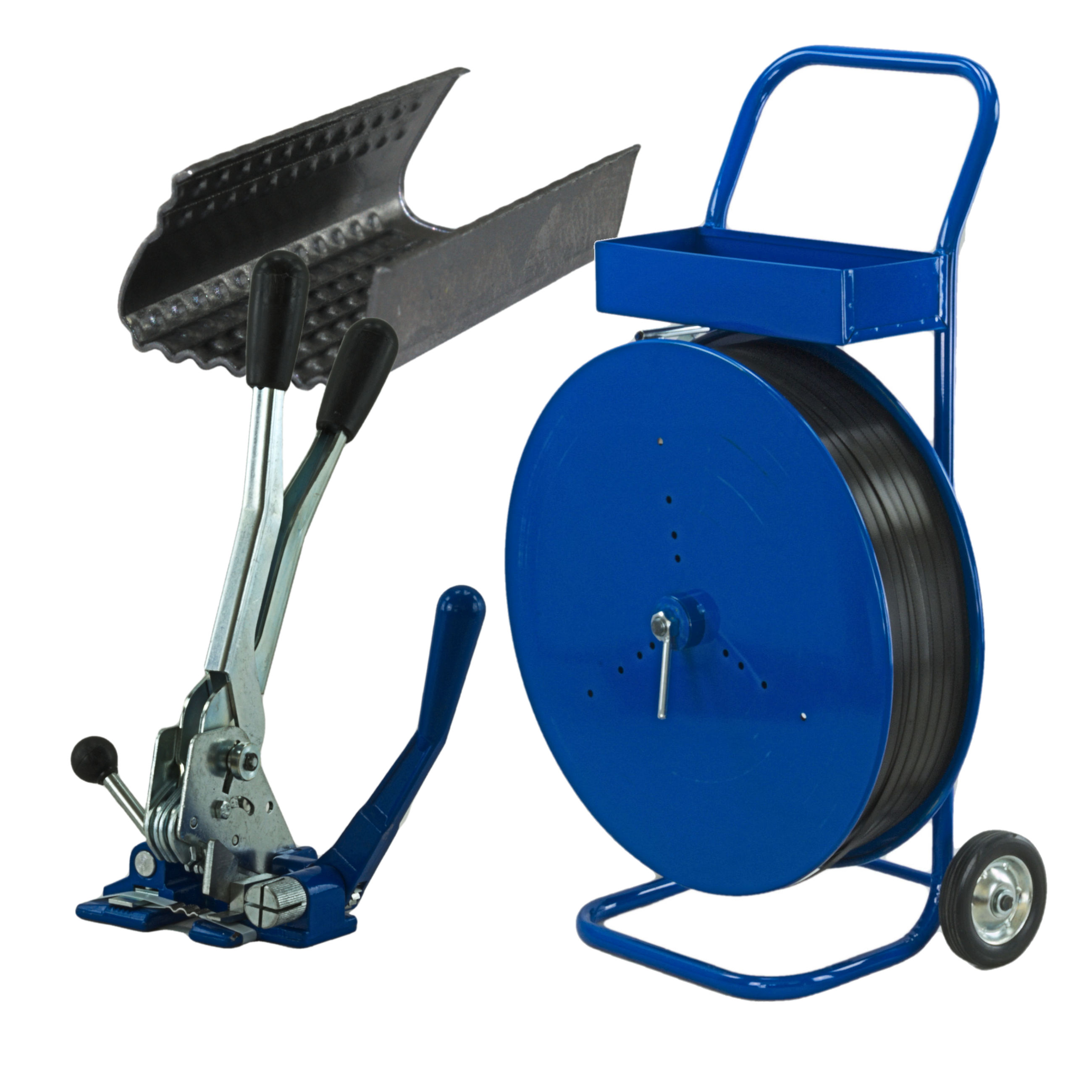 Weiterführende Links zu "16 mm Umreifung Set Abrollwagen PP 2000m Umreifungsband Verschlussgerät Hülsen"