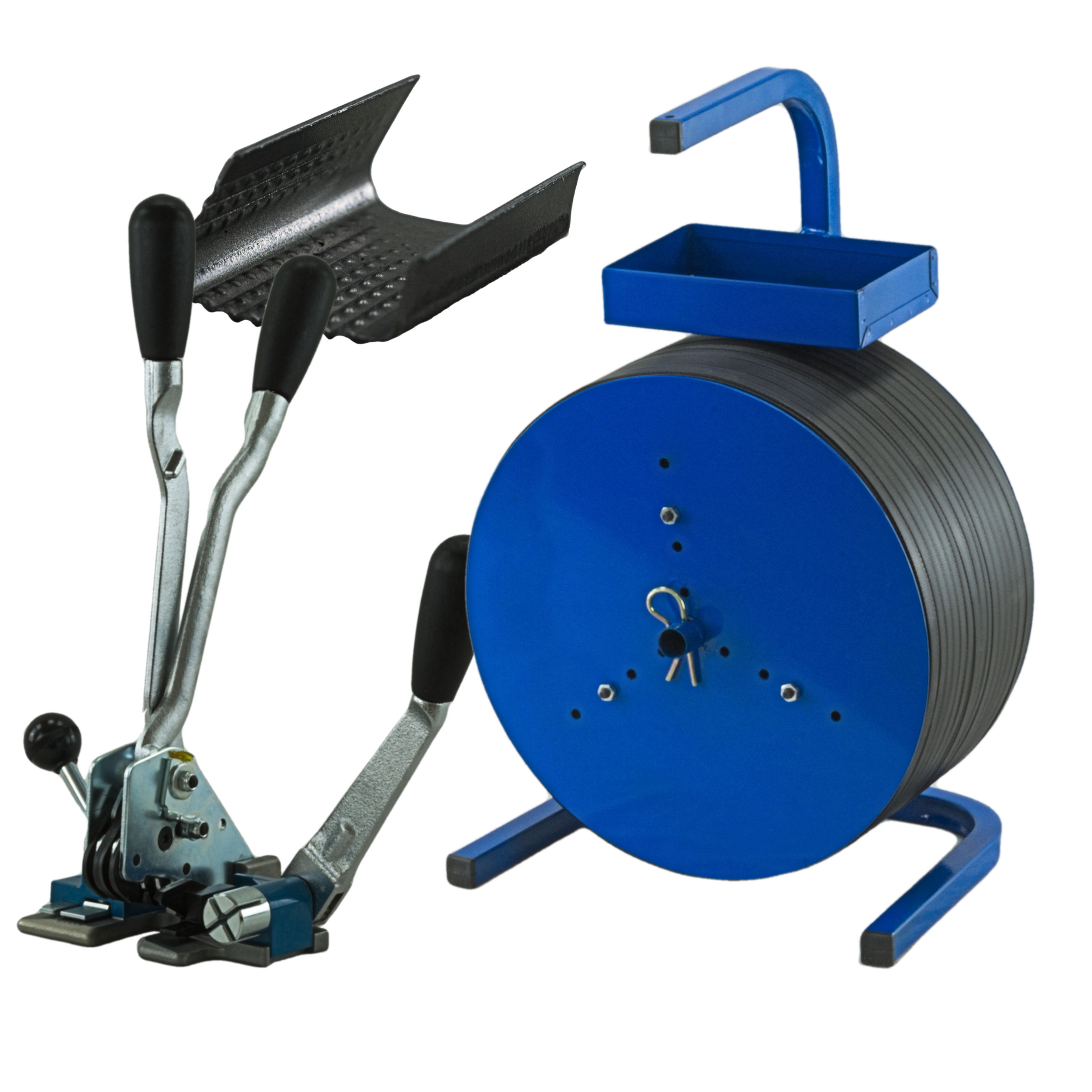 Weiterführende Links zu "16 mm PP Umreifung Set Umreifungsband Abroller Verschlussgerät Hülsen 2000m"
